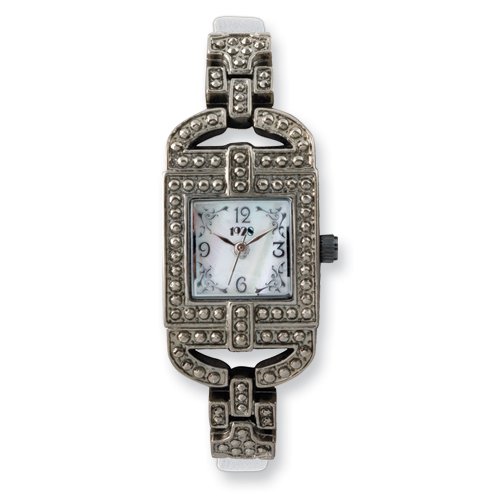 1928 Boutique 1928 Black-plated White Faux Leather Square MOP 20x25mm Watch. The 1928 Boutique collection offers an upscale alternative to the fashion jewelry found in most department stores. This collection is comprised of finely crafted styles made with mixed metals in various tones, set with Crystals, Cultura Glass Pearls and Natural Stones.