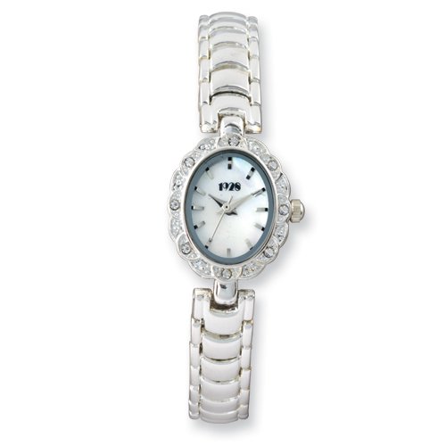 1928 Boutique 1928 Silver-tone Crystal Bezel MOP Oval Dial 19x23mm Watch