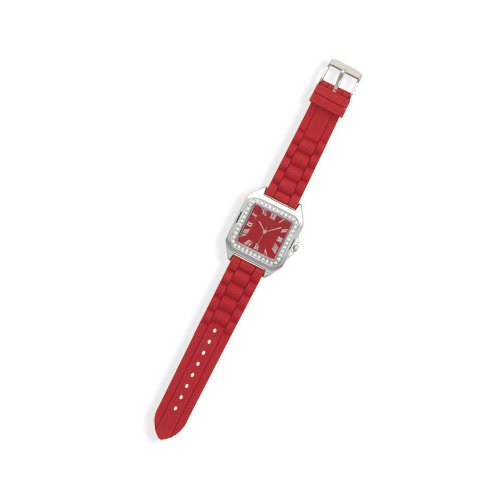 - CleverSilver's Red Rubber Fashion Watch With Squar...